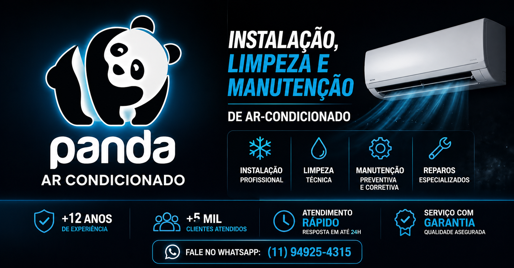 Não espere o calor chegar ou o aparelho falhar. Entre em contato com a Panda Ar-Condicionado e garanta conforto, eficiência e tranquilidade para sua casa ou empresa.